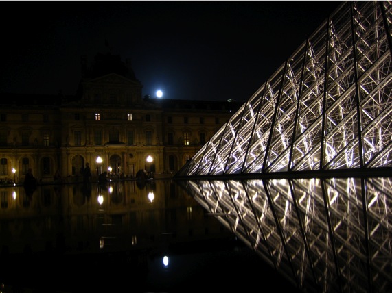 The pyramid is such a wise use of space and shape and air for the difficult purpose of funneling the throngs into the innards. And it leaves the square open for sitting around.